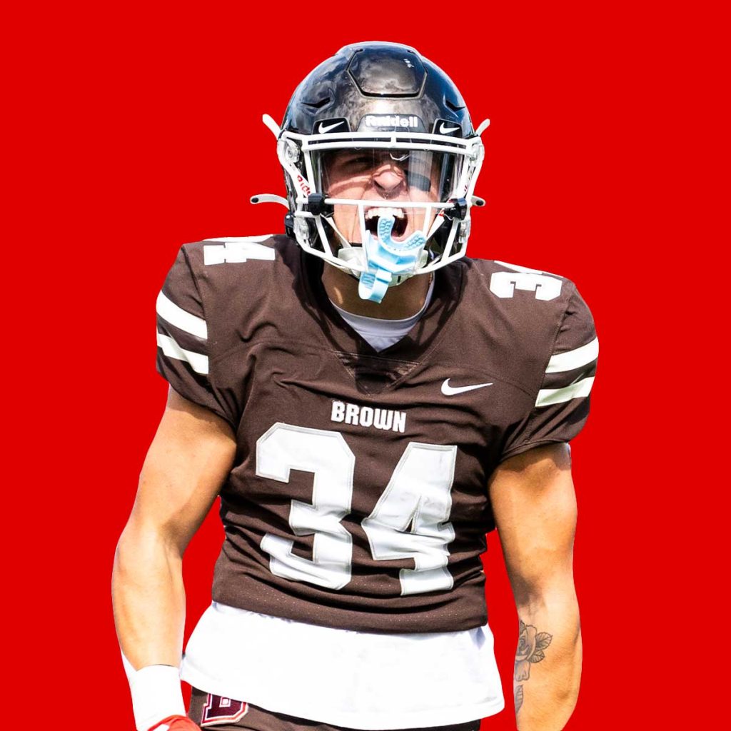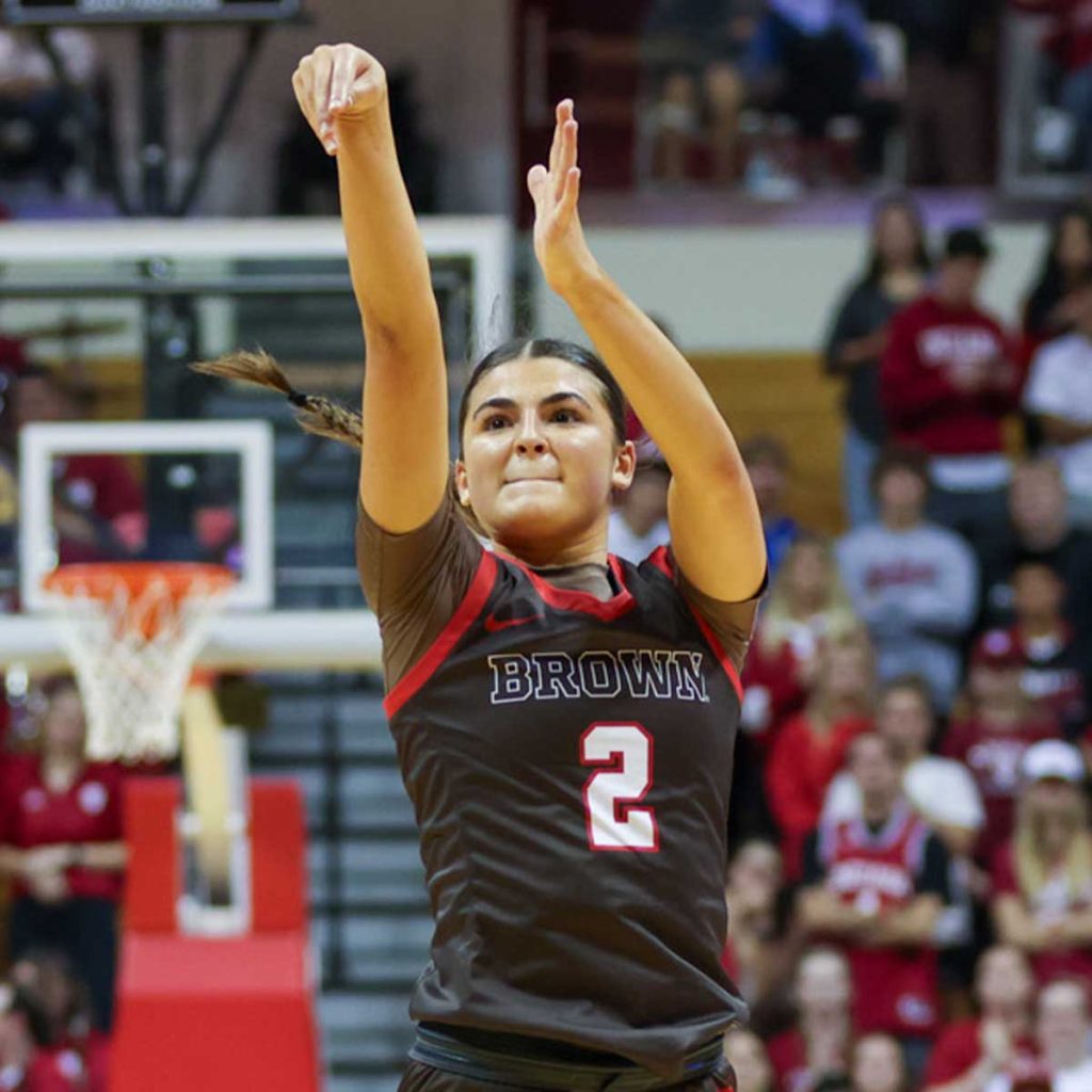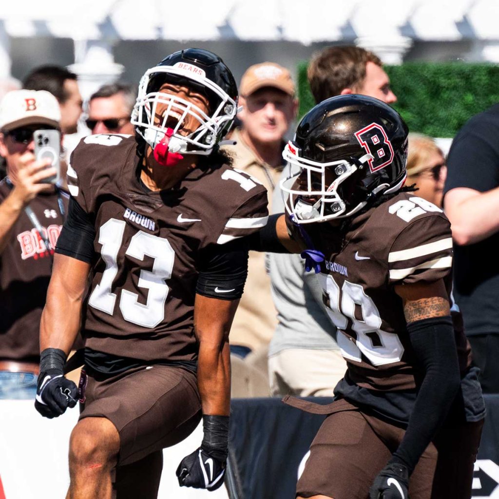 Feature both male and female athletes across a range of sports. Select images that capture Brown athletes in motion to reinforce the theme of energy and momentum.